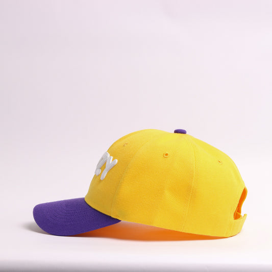 "COZY" Embroidered Two-Tone Baseball Cap | Yellow & Purple Streetwear Dad Cap