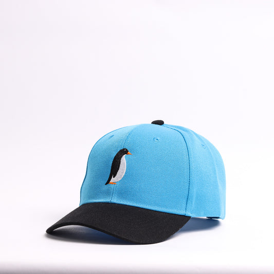 Embroidered Penguin Mascot Baseball Cap | Sky Blue & Black Custom Winter Vibes Dad Hat