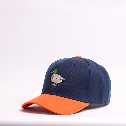 Mallard Duck Embroidered Baseball Cap | Navy & Orange Custom Outdoors Dad Hat