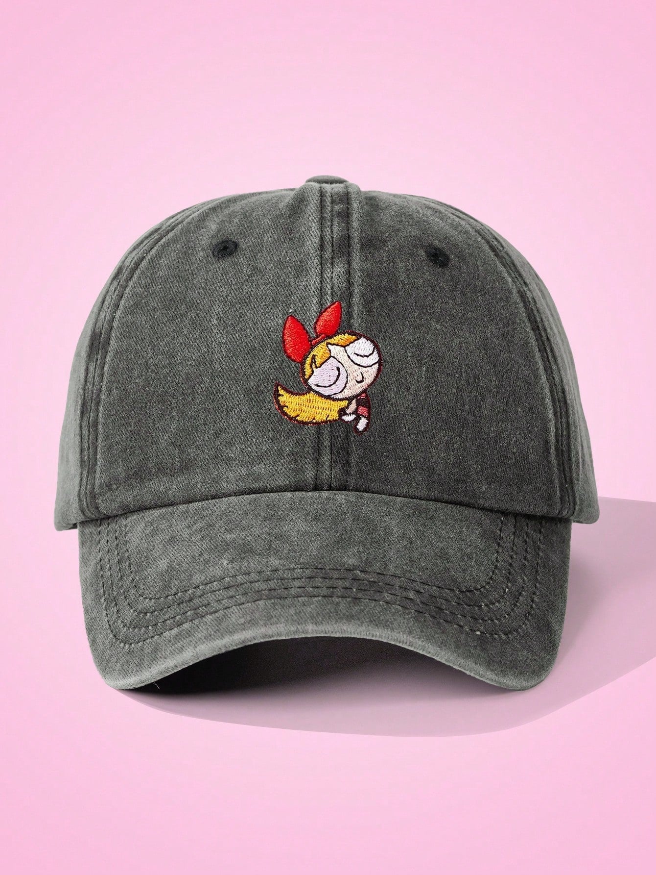 Blossom Embroidered Washed Black Hat – Powerpuff Girls Inspired