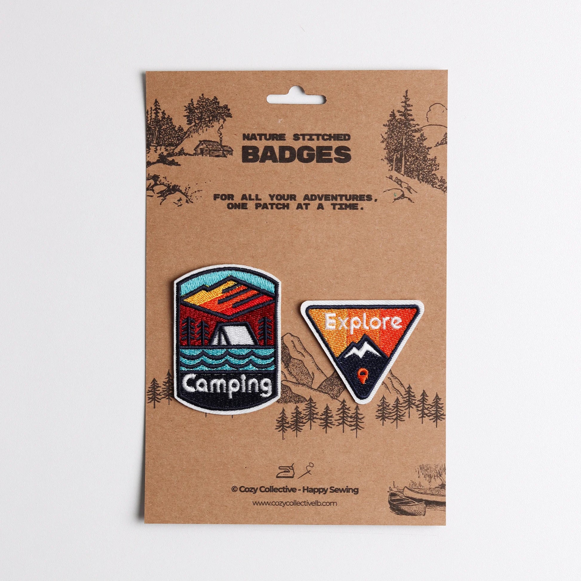 Bring the beauty of a mountain sunset to your gear with the Camping & Explore Patch Set! This vibrant 2-pack captures the essence of a perfect night outdoors, featuring rich colors like burnt orange, deep red, and cool blue water. Use these high-quality, embroidered badges to personalize your tent bag, hiking pack, or camping quilt, and show the world you live for the next adventure.