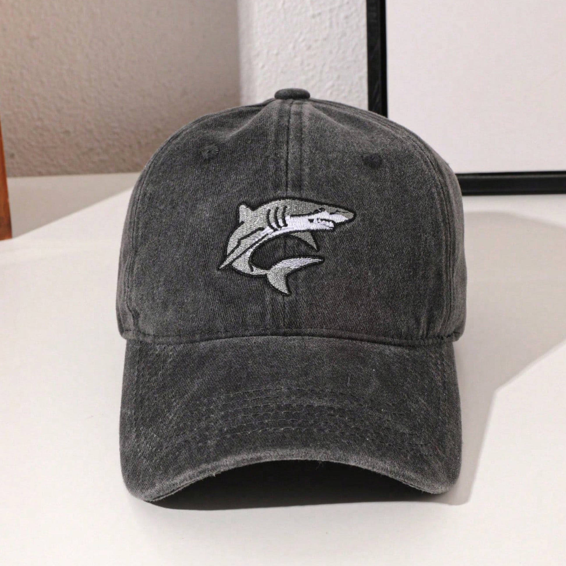 Handmade Shark Embroidered Washed Denim Baseball Cap